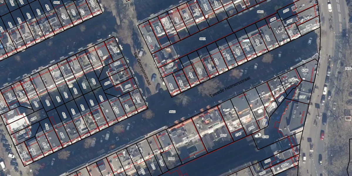Het perceel waarop het adres ligt is ASD13-Q-4295. De afkorting 'ASD13' staat voor kadastrale gemeente Amsterdam. Het perceel is kleiner dan gemiddeld in Amsterdam. Het perceel is 72 m² groot, terwijl het gemiddelde ligt op 393,94 m². Het kleinste perceel in de kadastrale gemeente is 1 m² groot. De grootste perceeloppervlakte is 6,2 ha. Er zijn 5 adressen aanwezig op het perceel. De huidige grenzen van het perceel zijn digitaal in de Basisregistratie Kadaster (BRK) geregistreerd op 03-11-2006.