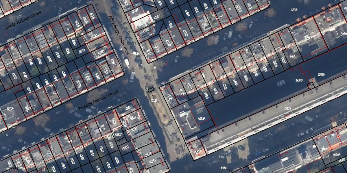 Het adres is gelegen op perceel 6764 in de sectie Q en de kadastrale gemeente Amsterdam. De kadastrale aanduiding is aldus ASD13-Q-6764. De gemiddelde perceelgrootte in Amsterdam is 393,94 m². Dit perceel is kleiner: de perceeloppervlakte bedraagt 95 m². Het grootste perceel in de kadastrale gemeente is 6,2 ha. Het kleinste perceel heeft een oppervlakte van 1 m². Op het perceel liggen in totaal 4 adressen. In de Basisregistratie Kadaster (BRK) werden de grenzen van het perceel geregistreerd op 03-11-2006.