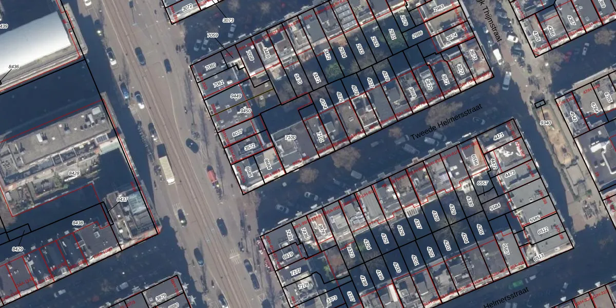 Het perceel waarop het adres ligt is ASD13-Q-7100. De afkorting 'ASD13' staat voor kadastrale gemeente Amsterdam. Het perceel is kleiner dan gemiddeld in Amsterdam. Het perceel is 271 m² groot, terwijl het gemiddelde ligt op 393,94 m². De grootste perceeloppervlakte in de kadastrale gemeente is 6,2 ha. De kleinste oppervlakte bedraagt 1 m². Op het perceel liggen in totaal 6 adressen. De huidige grenzen van het perceel zijn digitaal in de Basisregistratie Kadaster (BRK) geregistreerd op 27-03-2008.