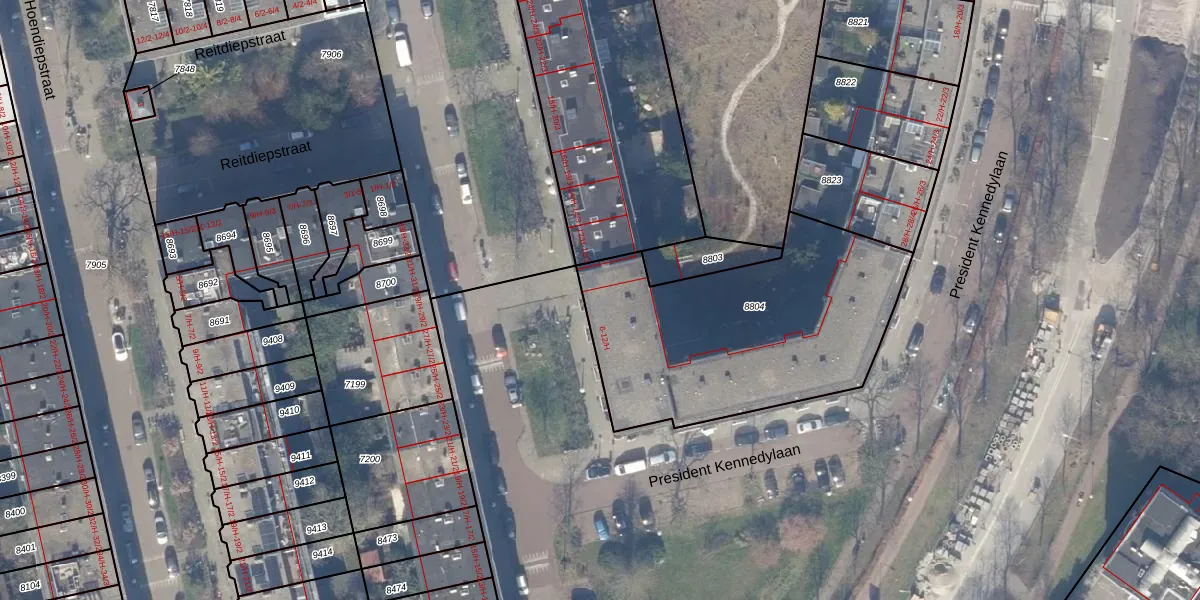 Het adres is gelegen op perceel 8804 in de sectie V en de kadastrale gemeente Amsterdam. De kadastrale aanduiding is aldus ASD18-V-8804. De gemiddelde perceeloppervlakte in de kadastrale gemeente Amsterdam is 558,8 m². Dit perceel is met zijn 1271 m² dus groter dan gemiddeld. Het kleinste perceel in de kadastrale gemeente is 0 m² groot. De grootste perceeloppervlakte is 12,5 ha. Op het perceel liggen in totaal 44 adressen. De huidige grenzen van het perceel zijn digitaal in de Basisregistratie Kadaster (BRK) geregistreerd op 22-11-2006.