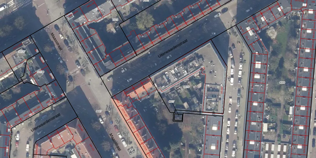 Uiterwaardenstraat 229-B is gelegen op kadastraal perceel ASD18V9975. Deze kadastrale aanduiding is uniek en wordt gebruikt door het Kadaster om eigendomsrechten en andere zakelijke rechten vast te leggen. Het perceel maakt onderdeel uit van de kadastrale gemeente Amsterdam.