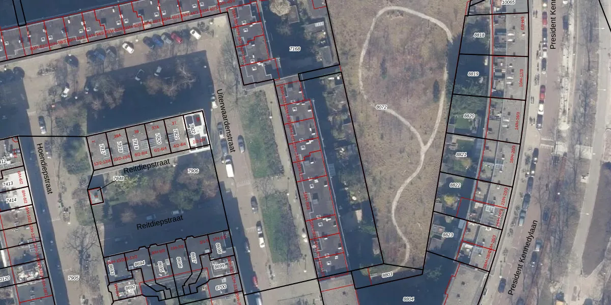 Het adres is gelegen op perceel 7168 in de sectie V en de kadastrale gemeente Amsterdam. De kadastrale aanduiding is aldus ASD18-V-7168. De gemiddelde perceeloppervlakte in de kadastrale gemeente Amsterdam is 558,8 m². Dit perceel is met zijn 5279 m² dus groter dan gemiddeld. De grootste perceeloppervlakte in de kadastrale gemeente is 12,5 ha. De kleinste oppervlakte bedraagt 0 m². Op het perceel zijn 137 adressen aanwezig. De huidige grenzen van het perceel zijn digitaal in de Basisregistratie Kadaster (BRK) geregistreerd op 29-11-2006.