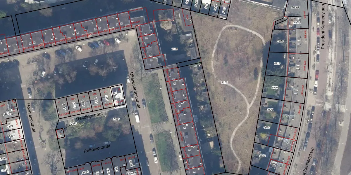 Het adres is gelegen op perceel 7168 in de sectie V en de kadastrale gemeente Amsterdam. De kadastrale aanduiding is aldus ASD18-V-7168. De gemiddelde perceeloppervlakte in de kadastrale gemeente Amsterdam is 558,8 m². Dit perceel is met zijn 5279 m² dus groter dan gemiddeld. De grootste perceeloppervlakte in de kadastrale gemeente is 12,5 ha. De kleinste oppervlakte bedraagt 0 m². Er zijn 137 adressen aanwezig op het perceel. In de Basisregistratie Kadaster (BRK) werden de grenzen van het perceel geregistreerd op 29-11-2006.