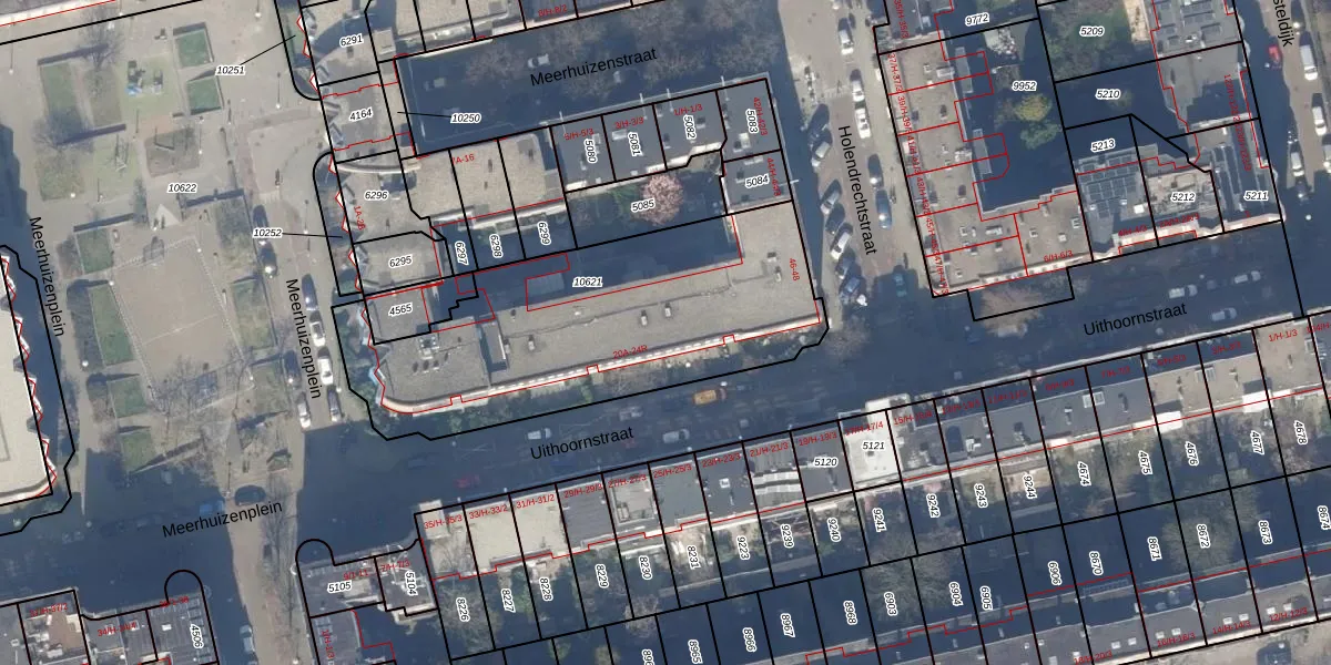 Uithoornstraat 22-F is gelegen op kadastraal perceel ASD18V10621. Deze kadastrale aanduiding is uniek en wordt gebruikt door het Kadaster om eigendomsrechten en andere zakelijke rechten vast te leggen. Het perceel maakt onderdeel uit van de kadastrale gemeente Amsterdam.
