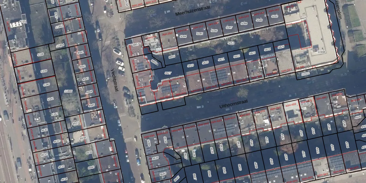 Het adres is gelegen op perceel 9927 in de sectie V en de kadastrale gemeente Amsterdam. De kadastrale aanduiding is aldus ASD18-V-9927. Het perceel is met 611 m² relatief groot. Het gemiddelde ligt in de kadastrale gemeente Amsterdam op 559,23 m². De grootste perceeloppervlakte in de kadastrale gemeente is 12,5 ha. De kleinste oppervlakte bedraagt 0 m². Er zijn 15 adressen aanwezig op het perceel. De huidige grenzen van het perceel zijn digitaal in de Basisregistratie Kadaster (BRK) geregistreerd op 26-09-2006.
