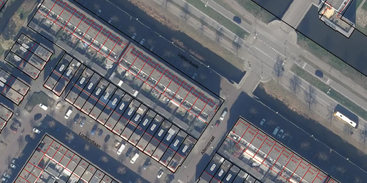 Het perceel waarop Vätternkade 32 staat heeft een oppervlakte van 2932 m². Dit is een zeer groot perceel. De perceeloppervlakte wordt geregistreerd door het Kadaster. Gedetailleerde informatie over de maten van dit perceel kunt u vinden in het rapport Kadastrale kaart met maatvoering van Vätternkade 32.