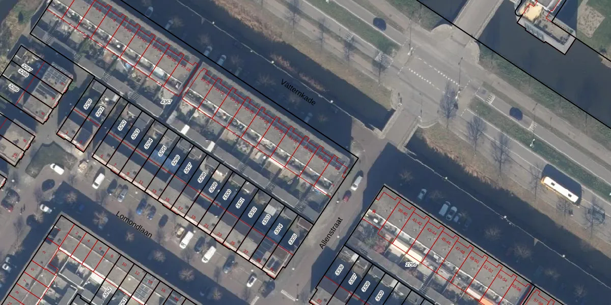 Het perceel waarop Vätternkade 34 staat heeft een oppervlakte van 2932 m². Dit is een zeer groot perceel. De perceeloppervlakte wordt geregistreerd door het Kadaster. Gedetailleerde informatie over de maten van dit perceel kunt u vinden in het rapport Kadastrale kaart met maatvoering van Vätternkade 34.