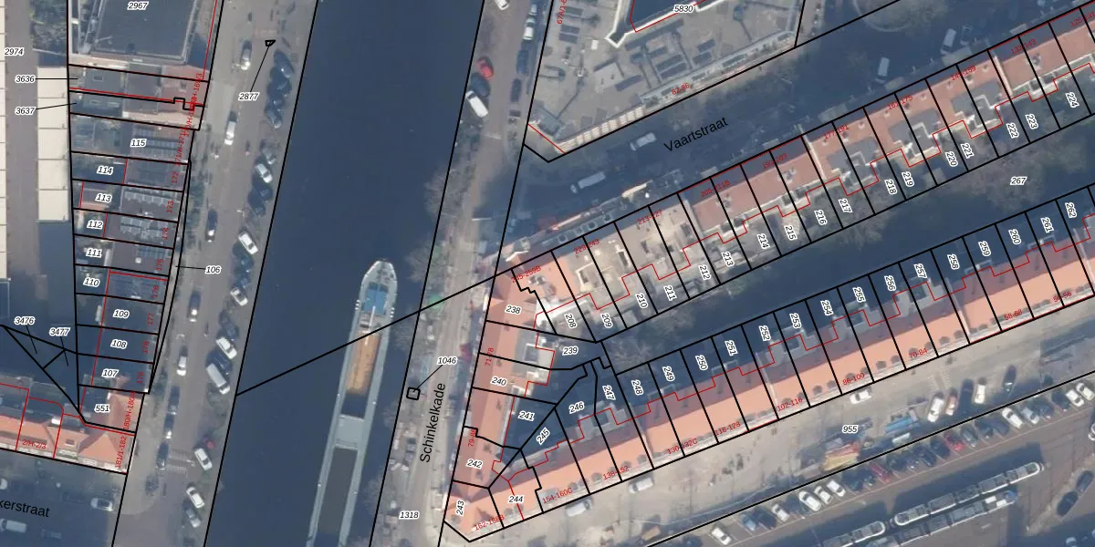 Vaartstraat 251 is gelegen op kadastraal perceel ASD24AC208. Deze kadastrale aanduiding is uniek en wordt gebruikt door het Kadaster om eigendomsrechten en andere zakelijke rechten vast te leggen. Het perceel maakt onderdeel uit van de kadastrale gemeente Amsterdam.