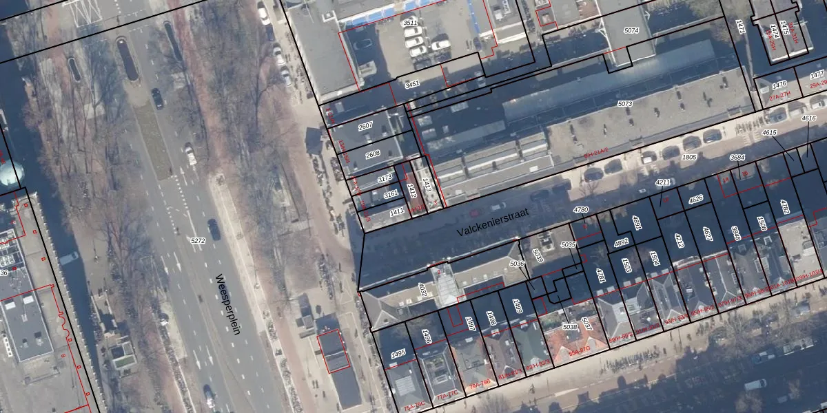 Het perceel waarop Valckenierstraat 1-2 staat heeft een oppervlakte van 49 m². Dit is een klein perceel. De perceeloppervlakte wordt geregistreerd door het Kadaster. Gedetailleerde informatie over de maten van dit perceel kunt u vinden in het rapport Kadastrale kaart met maatvoering van Valckenierstraat 1-2.