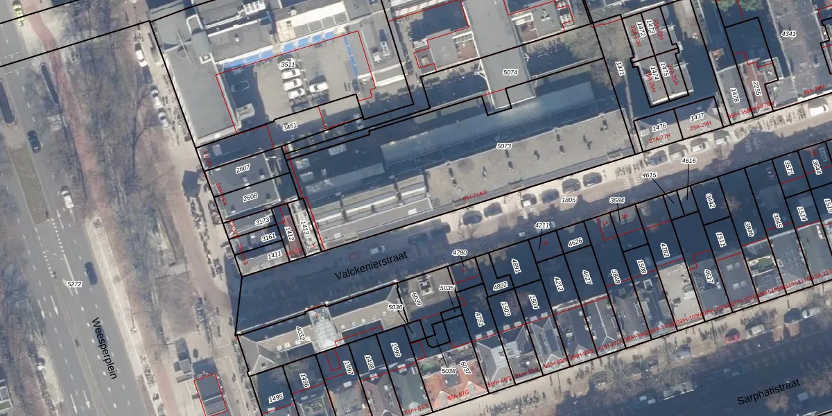 Het adres ligt op het perceel ASD11-O-5073, dat zich in de kadastrale gemeente Amsterdam bevindt. Het perceel is met 1914 m² relatief groot. Het gemiddelde ligt in de kadastrale gemeente Amsterdam op 781,11 m². De grootste perceeloppervlakte in de kadastrale gemeente is 12,0 ha. De kleinste oppervlakte bedraagt 1 m². Op het perceel zijn 47 adressen aanwezig. In de Basisregistratie Kadaster (BRK) werden de grenzen van het perceel geregistreerd op 25-07-2012.