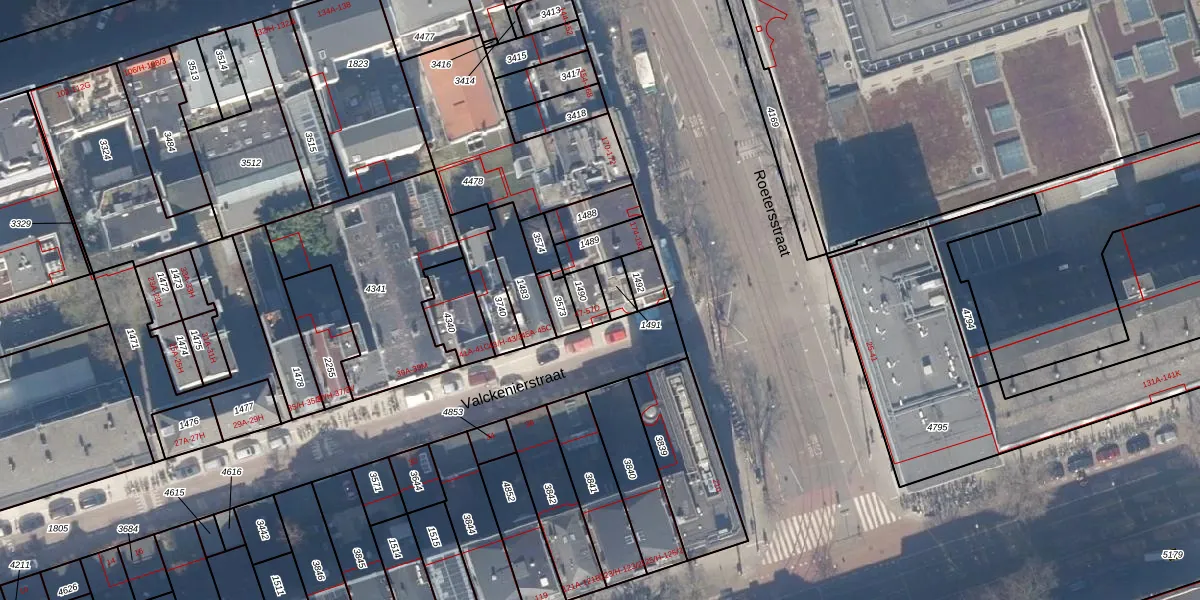 Het perceel waarop Valckenierstraat 57-B staat heeft een oppervlakte van 46 m². Dit is een klein perceel. De perceeloppervlakte wordt geregistreerd door het Kadaster. Gedetailleerde informatie over de maten van dit perceel kunt u vinden in het rapport Kadastrale kaart met maatvoering van Valckenierstraat 57-B.