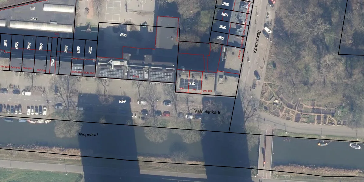 Valentijnkade 100 is gelegen op kadastraal perceel ASD19W7969. Deze kadastrale aanduiding is uniek en wordt gebruikt door het Kadaster om eigendomsrechten en andere zakelijke rechten vast te leggen. Het perceel maakt onderdeel uit van de kadastrale gemeente Amsterdam.