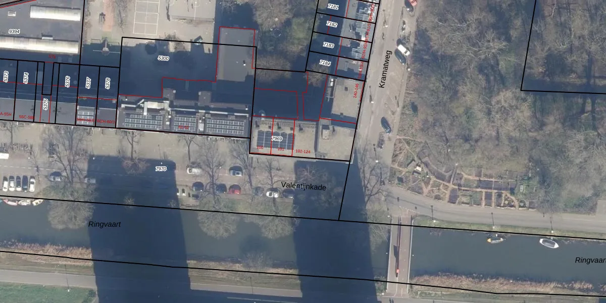 Valentijnkade 104 is gelegen op kadastraal perceel ASD19W7969. Deze kadastrale aanduiding is uniek en wordt gebruikt door het Kadaster om eigendomsrechten en andere zakelijke rechten vast te leggen. Het perceel maakt onderdeel uit van de kadastrale gemeente Amsterdam.