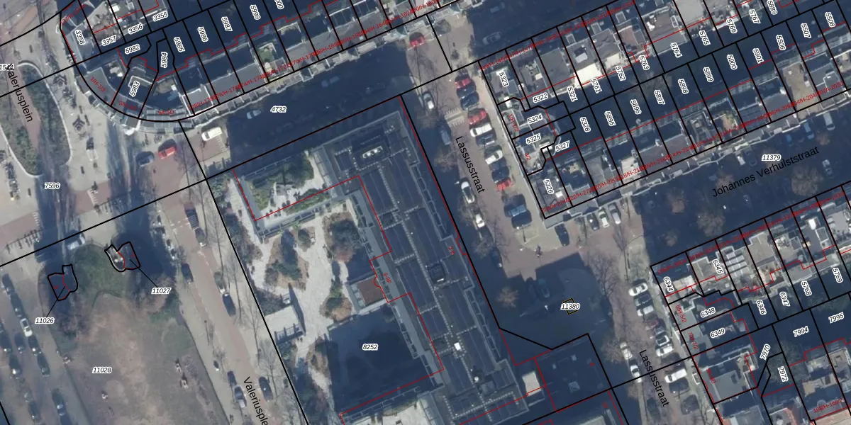 Het perceel waarop Valeriusplein 9-D-3 staat heeft een oppervlakte van 4414 m². Dit is een zeer groot perceel. De perceeloppervlakte wordt geregistreerd door het Kadaster. Gedetailleerde informatie over de maten van dit perceel kunt u vinden in het rapport Kadastrale kaart met maatvoering van Valeriusplein 9-D-3.