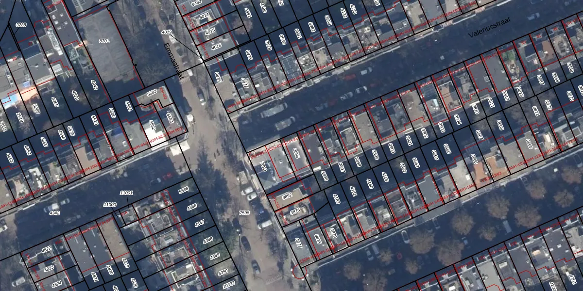 Het perceel waarop Valeriusstraat 81-H staat heeft een oppervlakte van 98 m². Dit is een klein perceel. De perceeloppervlakte wordt geregistreerd door het Kadaster. Gedetailleerde informatie over de maten van dit perceel kunt u vinden in het rapport Kadastrale kaart met maatvoering van Valeriusstraat 81-H.