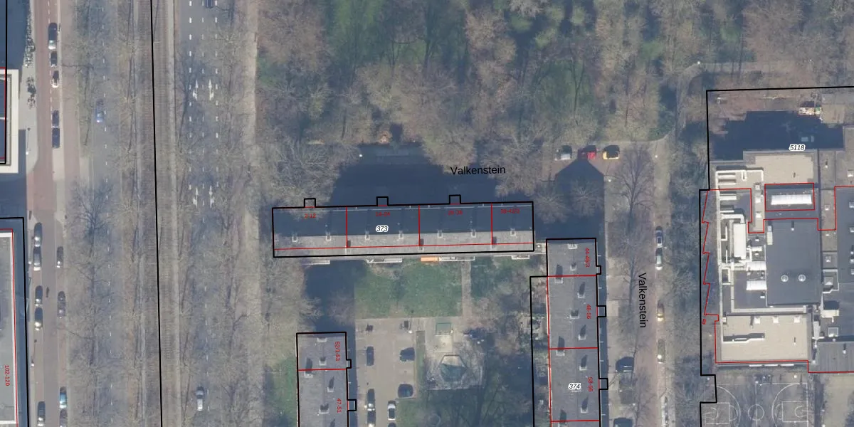 Het perceel waarop Valkenstein 26 staat heeft een oppervlakte van 715 m². Dit is een groot perceel. De perceeloppervlakte wordt geregistreerd door het Kadaster. Gedetailleerde informatie over de maten van dit perceel kunt u vinden in het rapport Kadastrale kaart met maatvoering van Valkenstein 26.