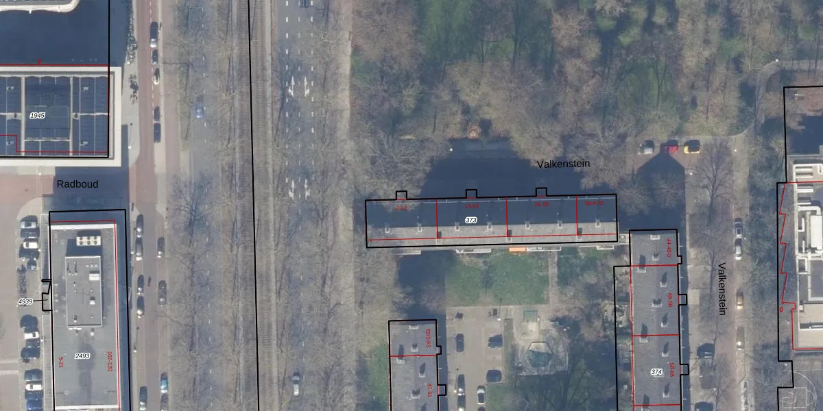 Het perceel waarop Valkenstein 8-3 staat heeft een oppervlakte van 715 m². Dit is een groot perceel. De perceeloppervlakte wordt geregistreerd door het Kadaster. Gedetailleerde informatie over de maten van dit perceel kunt u vinden in het rapport Kadastrale kaart met maatvoering van Valkenstein 8-3.
