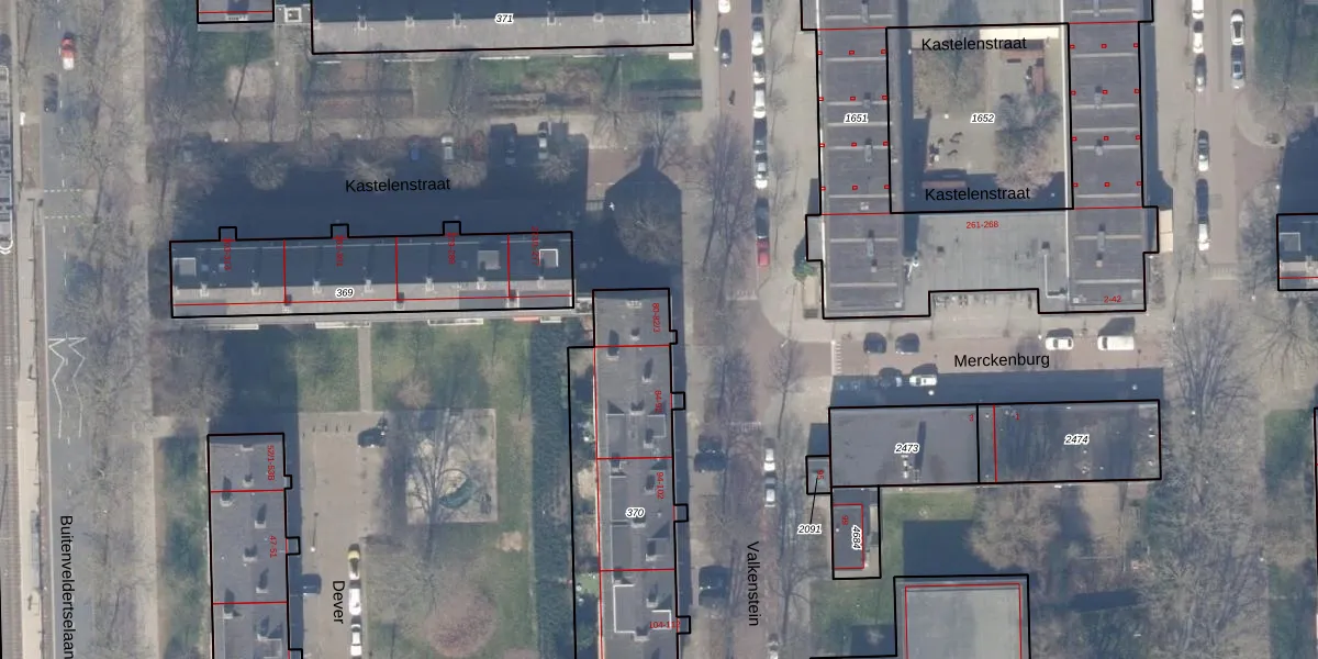 Het perceel waarop Valkenstein 82-3 staat heeft een oppervlakte van 911 m². Dit is een groot perceel. De perceeloppervlakte wordt geregistreerd door het Kadaster. Gedetailleerde informatie over de maten van dit perceel kunt u vinden in het rapport Kadastrale kaart met maatvoering van Valkenstein 82-3.