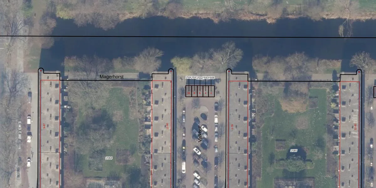 Het perceel waarop Valkhof 10 staat heeft een oppervlakte van 19 m². Dit is een klein perceel. De perceeloppervlakte wordt geregistreerd door het Kadaster. Gedetailleerde informatie over de maten van dit perceel kunt u vinden in het rapport Kadastrale kaart met maatvoering van Valkhof 10.