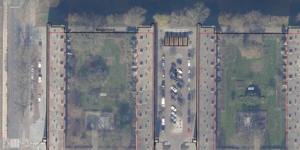 Het adres ligt op het perceel ASD30-AK-2084, dat zich in de kadastrale gemeente Amsterdam bevindt. De oppervlakte van het perceel is 5866 m². Dat is groter dan gemiddeld in Amsterdam, waar de gemiddelde perceeloppervlakte op 1336,34 m² ligt. Het grootste perceel in de kadastrale gemeente is 22,2 ha. Het kleinste perceel heeft een oppervlakte van 0 m². Op het perceel zijn 80 adressen aanwezig. De huidige grenzen van het perceel zijn digitaal in de Basisregistratie Kadaster (BRK) geregistreerd op 07-07-2011.