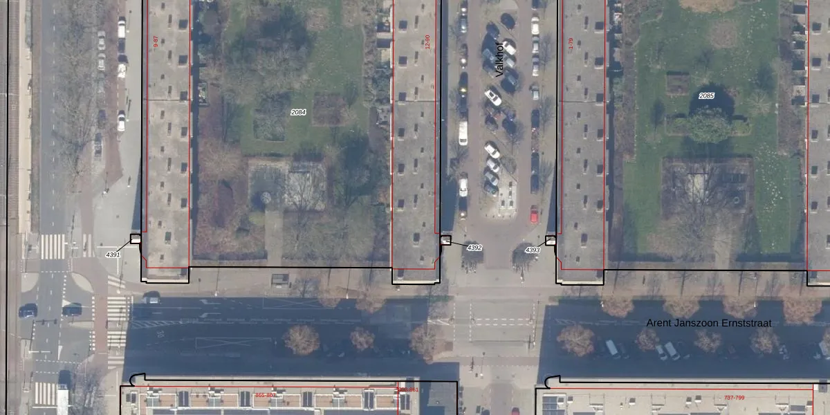 Het adres ligt op het perceel ASD30-AK-2084, dat zich in de kadastrale gemeente Amsterdam bevindt. De oppervlakte van het perceel is 5866 m². Dat is groter dan gemiddeld in Amsterdam, waar de gemiddelde perceeloppervlakte op 1336,34 m² ligt. Het kleinste perceel in de kadastrale gemeente is 0 m² groot. De grootste perceeloppervlakte is 22,2 ha. Op het perceel zijn 80 adressen aanwezig. De laatste wijziging in het de Basisregistratie Kadaster (BRK) was op 07-07-2011.