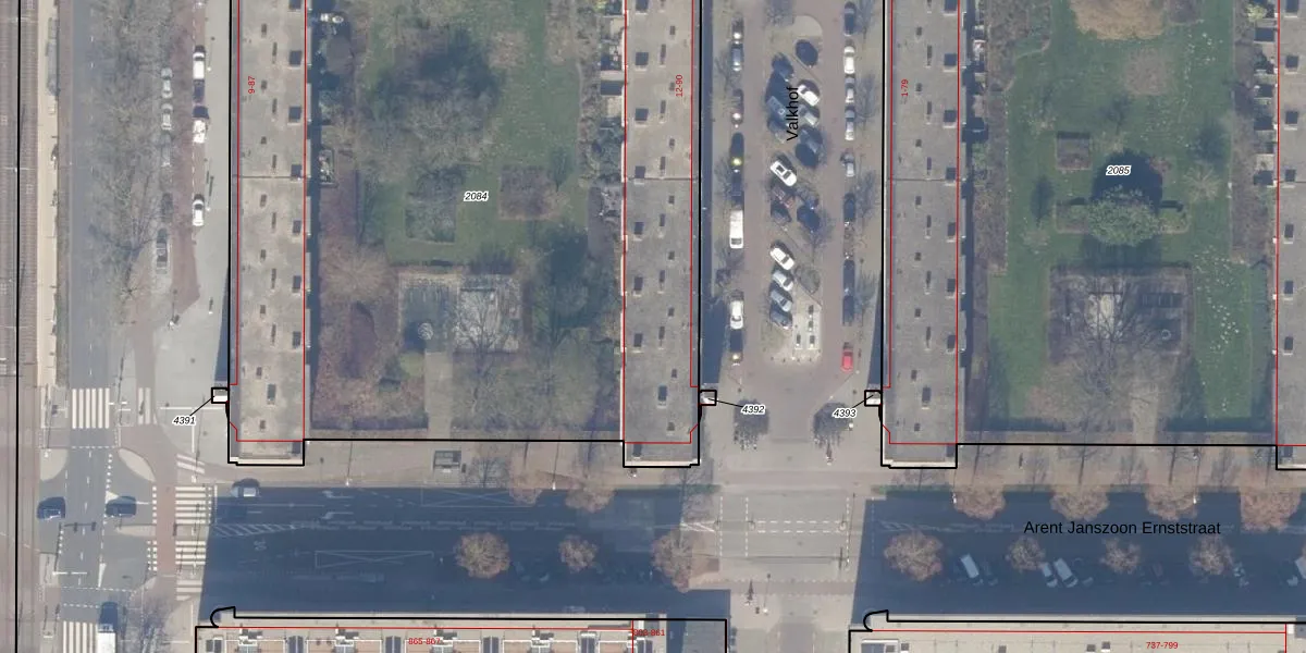 Het adres ligt op het perceel ASD30-AK-2084, dat zich in de kadastrale gemeente Amsterdam bevindt. De oppervlakte van het perceel is 5866 m². Dat is groter dan gemiddeld in Amsterdam, waar de gemiddelde perceeloppervlakte op 1336,34 m² ligt. Het kleinste perceel in de kadastrale gemeente is 0 m² groot. De grootste perceeloppervlakte is 22,2 ha. Op het perceel liggen in totaal 80 adressen. De huidige grenzen van het perceel zijn digitaal in de Basisregistratie Kadaster (BRK) geregistreerd op 07-07-2011.