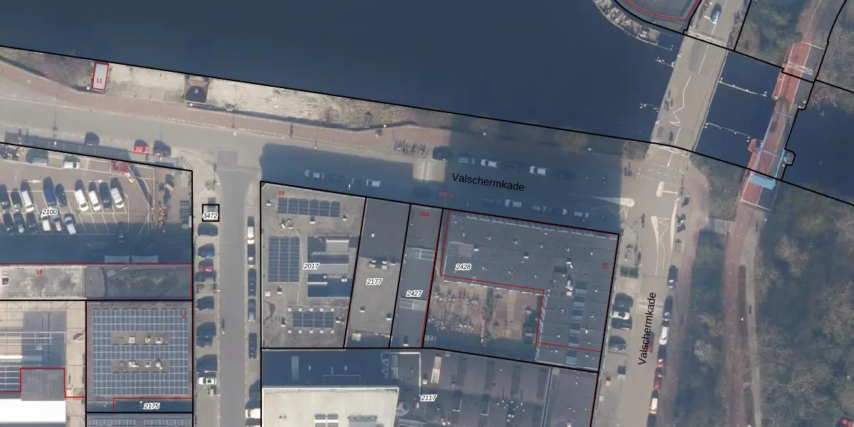 Valschermkade 18-A is gelegen op kadastraal perceel STN02F2427. Deze kadastrale aanduiding is uniek en wordt gebruikt door het Kadaster om eigendomsrechten en andere zakelijke rechten vast te leggen. Het perceel maakt onderdeel uit van de kadastrale gemeente Sloten Noord-Holland.