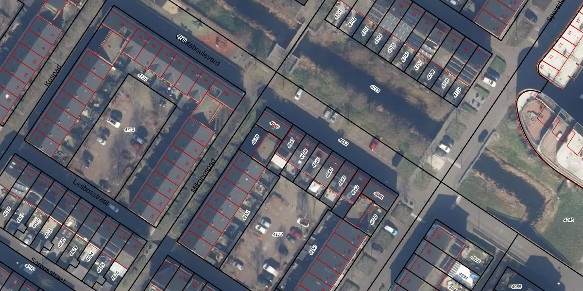 Gebruik de zoekbalk of klik op een perceel voor informatie over de adressen binnen dit perceel.