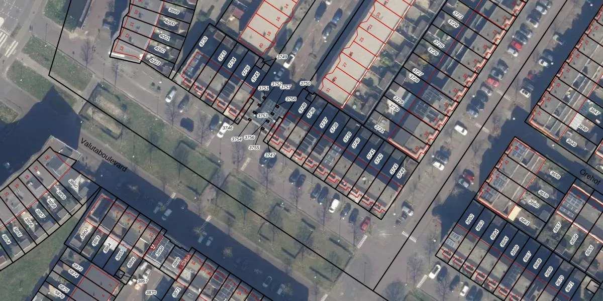Het perceel waarop Valutaboulevard 19 staat heeft een oppervlakte van 102 m². Dit is een middelgroot perceel. De perceeloppervlakte wordt geregistreerd door het Kadaster. Gedetailleerde informatie over de maten van dit perceel kunt u vinden in het rapport Kadastrale kaart met maatvoering van Valutaboulevard 19.