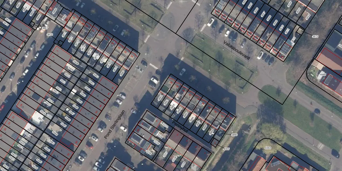 Het perceel waarop Valutaboulevard 36 staat heeft een oppervlakte van 105 m². Dit is een middelgroot perceel. De perceeloppervlakte wordt geregistreerd door het Kadaster. Gedetailleerde informatie over de maten van dit perceel kunt u vinden in het rapport Kadastrale kaart met maatvoering van Valutaboulevard 36.