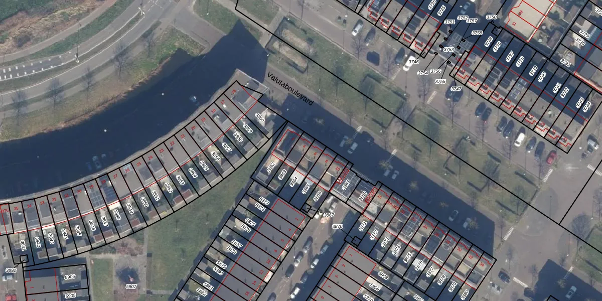 Het perceel waarop Valutaboulevard 4 staat heeft een oppervlakte van 101 m². Dit is een middelgroot perceel. De perceeloppervlakte wordt geregistreerd door het Kadaster. Gedetailleerde informatie over de maten van dit perceel kunt u vinden in het rapport Kadastrale kaart met maatvoering van Valutaboulevard 4.