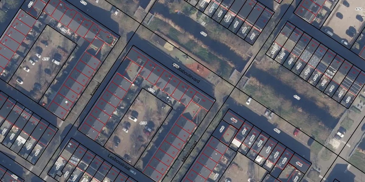 Het perceel waarop Valutaboulevard 96 staat heeft een oppervlakte van 2258 m². Dit is een zeer groot perceel. De perceeloppervlakte wordt geregistreerd door het Kadaster. Gedetailleerde informatie over de maten van dit perceel kunt u vinden in het rapport Kadastrale kaart met maatvoering van Valutaboulevard 96.