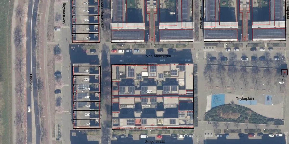 Het perceel waarop Van Abbestraat 12 staat heeft een oppervlakte van 2544 m². Dit is een zeer groot perceel. De perceeloppervlakte wordt geregistreerd door het Kadaster. Gedetailleerde informatie over de maten van dit perceel kunt u vinden in het rapport Kadastrale kaart met maatvoering van Van Abbestraat 12.