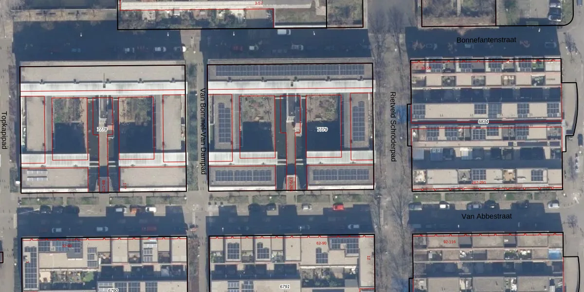 Het perceel waarop Van Abbestraat 195 staat heeft een oppervlakte van 2450 m². Dit is een zeer groot perceel. De perceeloppervlakte wordt geregistreerd door het Kadaster. Gedetailleerde informatie over de maten van dit perceel kunt u vinden in het rapport Kadastrale kaart met maatvoering van Van Abbestraat 195.