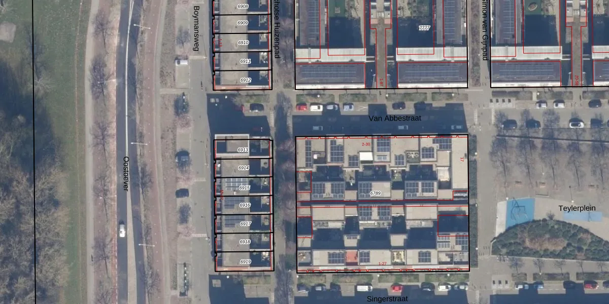 Het perceel waarop Van Abbestraat 2 staat heeft een oppervlakte van 2544 m². Dit is een zeer groot perceel. De perceeloppervlakte wordt geregistreerd door het Kadaster. Gedetailleerde informatie over de maten van dit perceel kunt u vinden in het rapport Kadastrale kaart met maatvoering van Van Abbestraat 2.