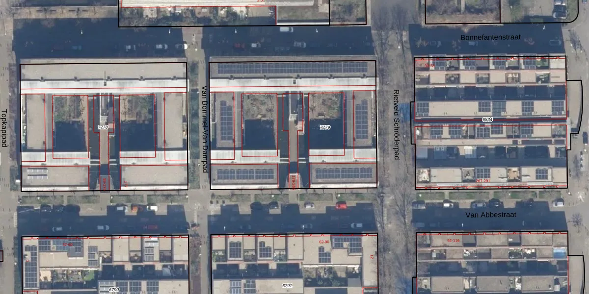 Het perceel waarop Van Abbestraat 209 staat heeft een oppervlakte van 2450 m². Dit is een zeer groot perceel. De perceeloppervlakte wordt geregistreerd door het Kadaster. Gedetailleerde informatie over de maten van dit perceel kunt u vinden in het rapport Kadastrale kaart met maatvoering van Van Abbestraat 209.