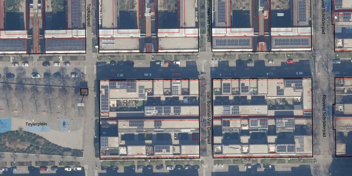 Het perceel waarop Van Abbestraat 54 staat heeft een oppervlakte van 2544 m². Dit is een zeer groot perceel. De perceeloppervlakte wordt geregistreerd door het Kadaster. Gedetailleerde informatie over de maten van dit perceel kunt u vinden in het rapport Kadastrale kaart met maatvoering van Van Abbestraat 54.