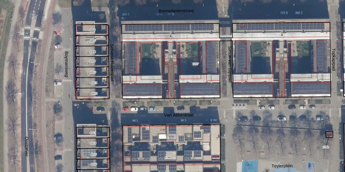 Het perceel waarop Van Abbestraat 77 staat heeft een oppervlakte van 4915 m². Dit is een zeer groot perceel. De perceeloppervlakte wordt geregistreerd door het Kadaster. Gedetailleerde informatie over de maten van dit perceel kunt u vinden in het rapport Kadastrale kaart met maatvoering van Van Abbestraat 77.