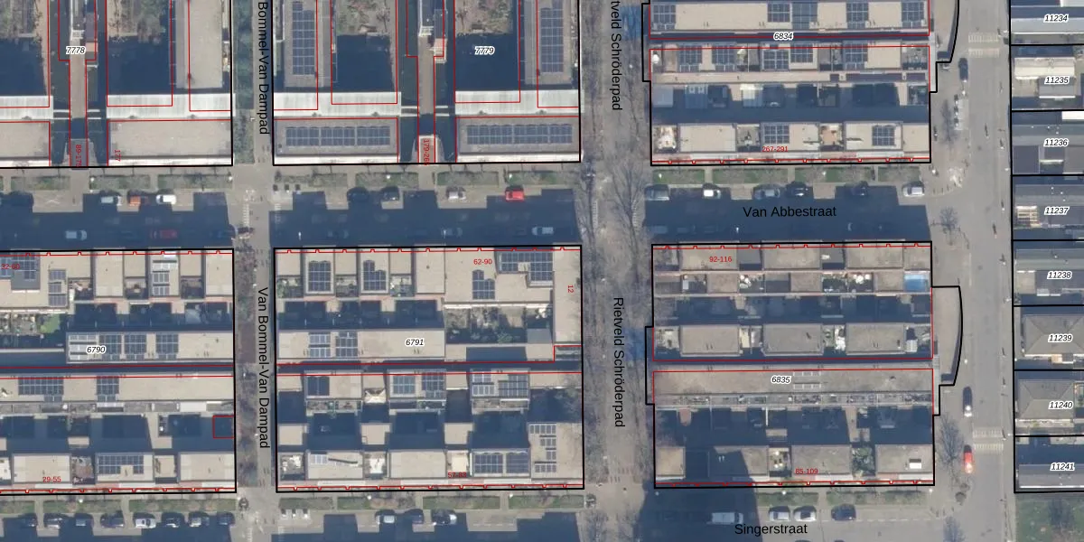 Het perceel waarop Van Abbestraat 86 staat heeft een oppervlakte van 2544 m². Dit is een zeer groot perceel. De perceeloppervlakte wordt geregistreerd door het Kadaster. Gedetailleerde informatie over de maten van dit perceel kunt u vinden in het rapport Kadastrale kaart met maatvoering van Van Abbestraat 86.