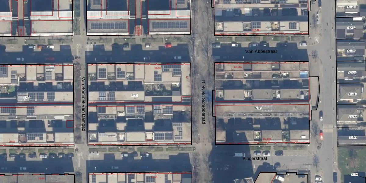 Het perceel waarop Van Abbestraat 90 staat heeft een oppervlakte van 2544 m². Dit is een zeer groot perceel. De perceeloppervlakte wordt geregistreerd door het Kadaster. Gedetailleerde informatie over de maten van dit perceel kunt u vinden in het rapport Kadastrale kaart met maatvoering van Van Abbestraat 90.