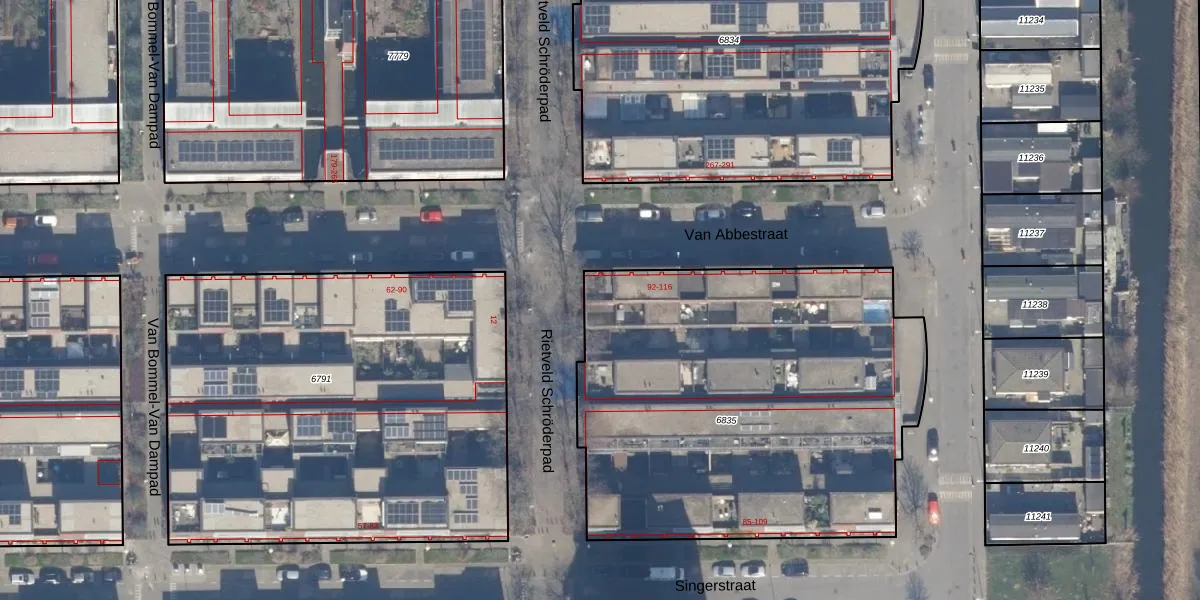 Het perceel waarop Van Abbestraat 92 staat heeft een oppervlakte van 2434 m². Dit is een zeer groot perceel. De perceeloppervlakte wordt geregistreerd door het Kadaster. Gedetailleerde informatie over de maten van dit perceel kunt u vinden in het rapport Kadastrale kaart met maatvoering van Van Abbestraat 92.