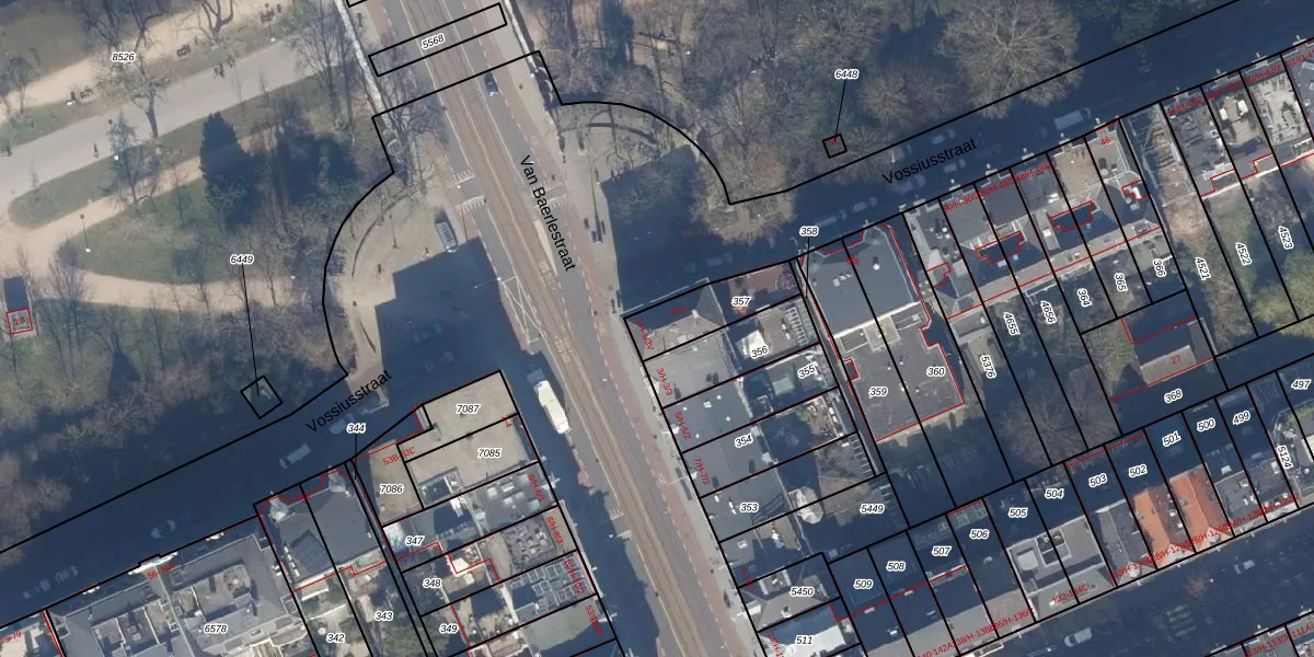 Het perceel waarop Van Baerlestraat 1-H staat heeft een oppervlakte van 186 m². Dit is een middelgroot perceel. De perceeloppervlakte wordt geregistreerd door het Kadaster. Gedetailleerde informatie over de maten van dit perceel kunt u vinden in het rapport Kadastrale kaart met maatvoering van Van Baerlestraat 1-H.