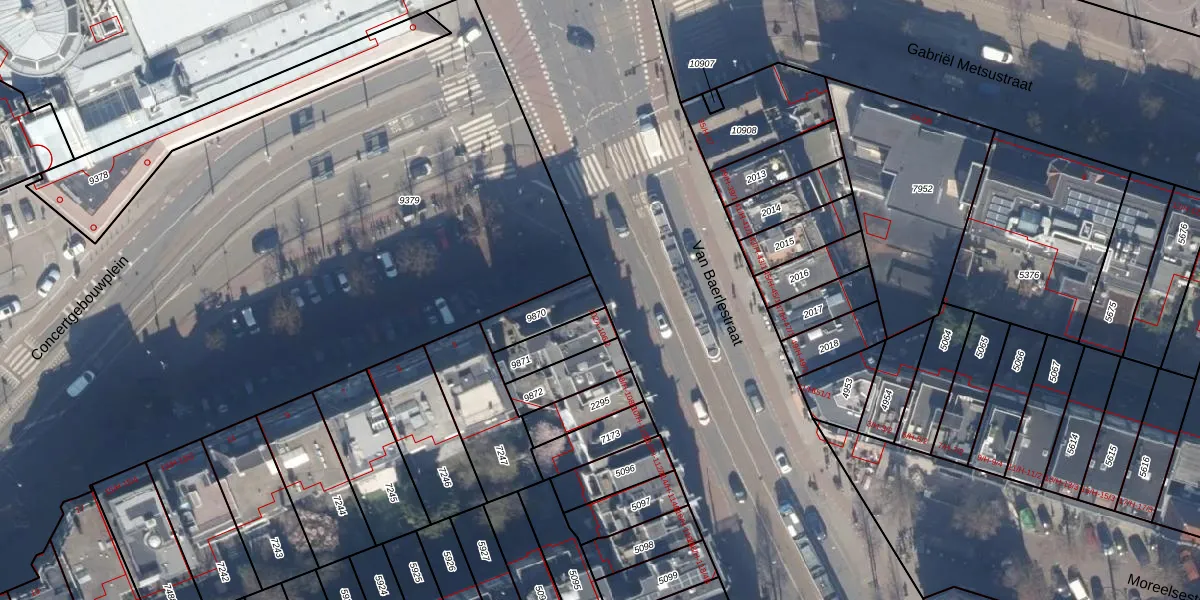 Van Baerlestraat 100 is gelegen op kadastraal perceel ASD17U9870. Deze kadastrale aanduiding is uniek en wordt gebruikt door het Kadaster om eigendomsrechten en andere zakelijke rechten vast te leggen. Het perceel maakt onderdeel uit van de kadastrale gemeente Amsterdam.