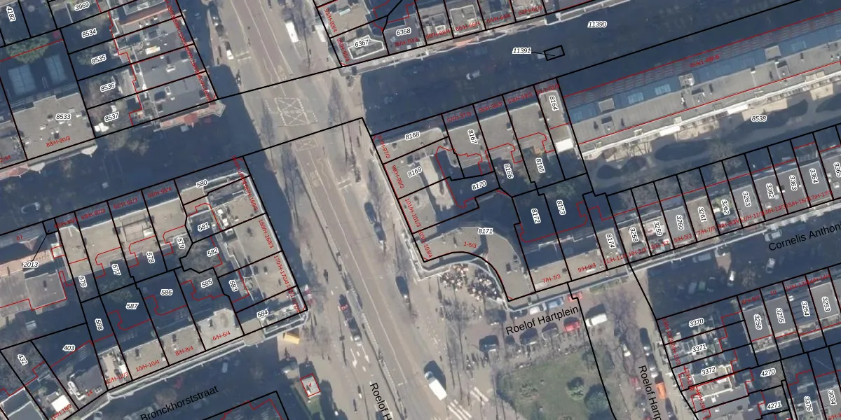 Het adres is gelegen op perceel 8170 in de sectie U en de kadastrale gemeente Amsterdam. De kadastrale aanduiding is aldus ASD17-U-8170. Het perceel is 184 m² groot. Dat is kleiner dan de gemiddelde perceeloppervlakte in Amsterdam, dat op 394,52 m² ligt. De grootste perceeloppervlakte in de kadastrale gemeente is 22,9 ha. De kleinste oppervlakte bedraagt 0 m². Op het perceel liggen in totaal 4 adressen. De huidige grenzen van het perceel zijn digitaal in de Basisregistratie Kadaster (BRK) geregistreerd op 25-01-2007.