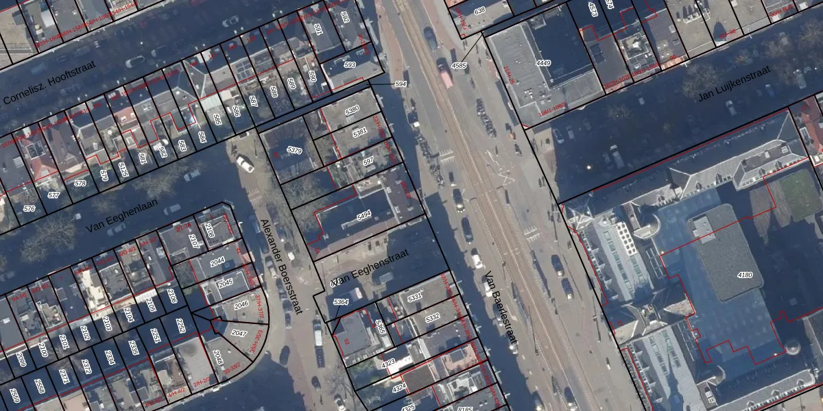 Van Baerlestraat 30 is gelegen op kadastraal perceel ASD14R5494. Deze kadastrale aanduiding is uniek en wordt gebruikt door het Kadaster om eigendomsrechten en andere zakelijke rechten vast te leggen. Het perceel maakt onderdeel uit van de kadastrale gemeente Amsterdam.