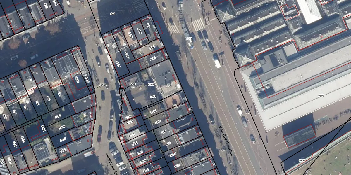 Het perceel waarop Van Baerlestraat 62-2 staat heeft een oppervlakte van 615 m². Dit is een groot perceel. De perceeloppervlakte wordt geregistreerd door het Kadaster. Gedetailleerde informatie over de maten van dit perceel kunt u vinden in het rapport Kadastrale kaart met maatvoering van Van Baerlestraat 62-2.
