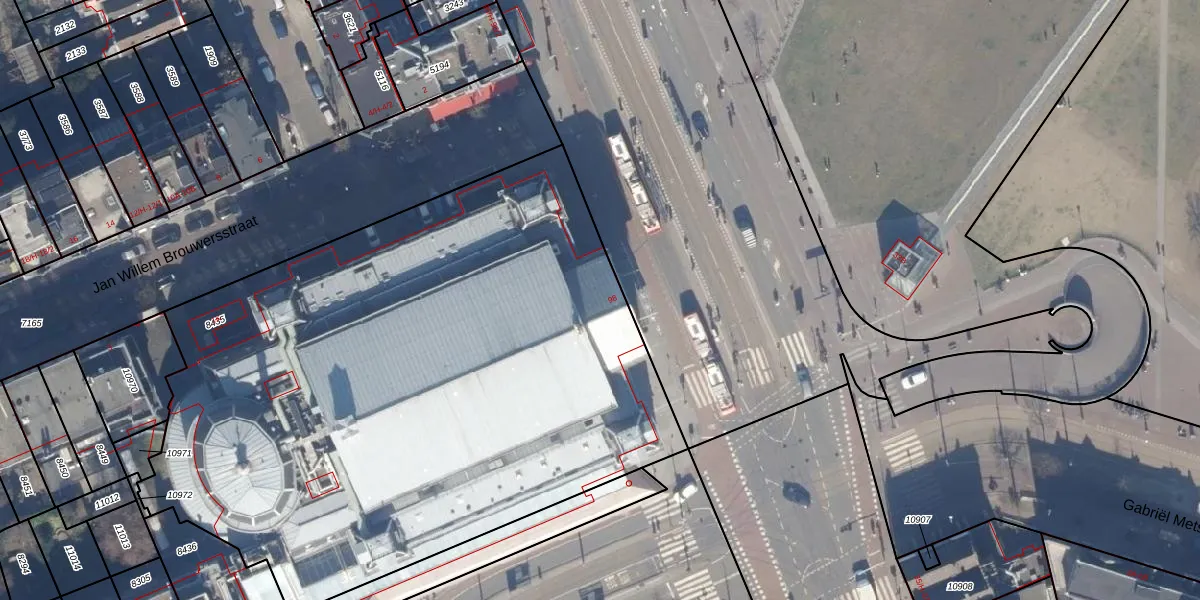 Het perceel waarop Van Baerlestraat 98 staat heeft een oppervlakte van 4287 m². Dit is een zeer groot perceel. De perceeloppervlakte wordt geregistreerd door het Kadaster. Gedetailleerde informatie over de maten van dit perceel kunt u vinden in het rapport Kadastrale kaart met maatvoering van Van Baerlestraat 98.