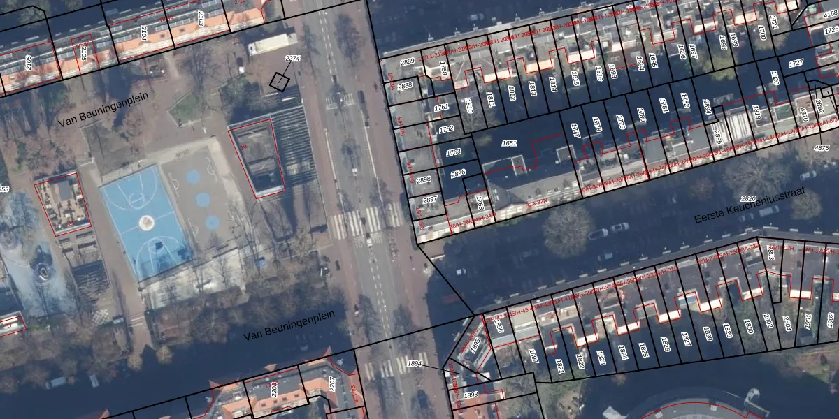 Van Beuningenplein 13-2 is gelegen op kadastraal perceel ASD21Y2897. Deze kadastrale aanduiding is uniek en wordt gebruikt door het Kadaster om eigendomsrechten en andere zakelijke rechten vast te leggen. Het perceel maakt onderdeel uit van de kadastrale gemeente Amsterdam.