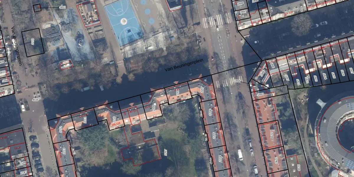 Van Beuningenplein 71 is gelegen op kadastraal perceel ASD21Y2208. Deze kadastrale aanduiding is uniek en wordt gebruikt door het Kadaster om eigendomsrechten en andere zakelijke rechten vast te leggen. Het perceel maakt onderdeel uit van de kadastrale gemeente Amsterdam.