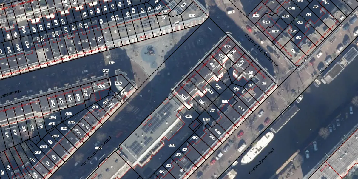 Het adres is gelegen op perceel 1414 in de sectie Y en de kadastrale gemeente Amsterdam. De kadastrale aanduiding is aldus ASD21-Y-1414. Het perceel is 108 m² groot. Dat is kleiner dan de gemiddelde perceeloppervlakte in Amsterdam, dat op 769,96 m² ligt. De grootste perceeloppervlakte in de kadastrale gemeente is 7,1 ha. De kleinste oppervlakte bedraagt 0 m². Op het perceel liggen in totaal 2 adressen. In de Basisregistratie Kadaster (BRK) werden de grenzen van het perceel geregistreerd op 12-01-2007.